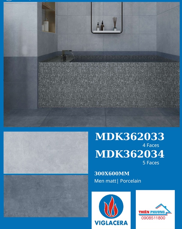 Gạch ốp lát MDK362033-MDK362034, kích thước 30x60cm dễ dàng thi công ốp tường ở nhiều khu vực dù diện tích lớn hay nhỏ. Gạch do thương hiệu Viglacera - nổi tiếng hàng đầu tại Việt Nam sản xuất.