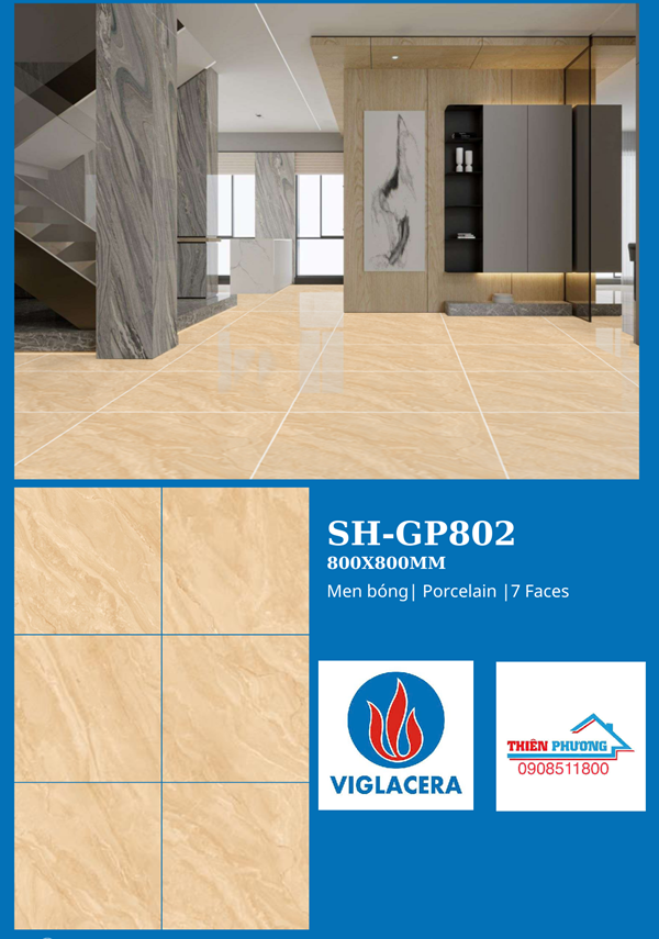 Gạch Viglacera GP802 với vẻ đẹp của gạch bóng cùng xương gạch Porcelain rắn chắc, tạo độ bên, khả năng chịu lực tốt